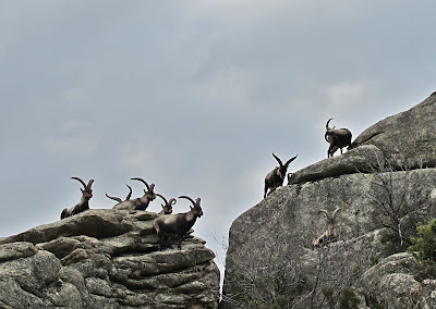 Durante enero, mes en el que las bajas nevadas lamen los llanos, tanto la fauna como la flora parecen ya definitivamente ausentes de nuestras serranías. Sin embargo, puedo distinguir en la cima del Risco de las Monteses  la altiva y estoica estampa del macho montés, imperturbable frente a la agresividad de casi todos los agentes climáticos, se recorta encima de los riscos y nos ofrece una reconfortante nota de calor en medio del desolado pero bello paisaje invernal.